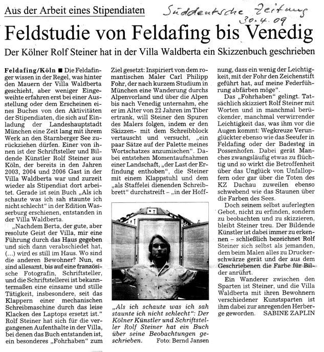 Es hat sich bestätigt, was ich auf der gestrigen Fahrt zum Starnberger See befürchtet hatte, als ich durch die Windschutzscheibe die vorüberziehende Landschaft betrachtete und vergeblich versuchte ein paar Sätze auf der Palette meines Wortschatzes anzumischen: Nämlich nackt und bloß, ohne das sonst übliche geistige Handwerkszeug, vor einem Berg, einem Haus, einem Baum, einem Waldrand, einem zwischen Hügeln hervorragenden Kirchturm zu stehen! Da ist Nichts zwischen dem Motiv und mir, weder eine wahre noch eine erfundene Geschichte, weder philosophische Überlegungen noch subjektive Befindlichkeiten, nichts von all dem, aus dem gewöhnlich der Stoff des Schreibens gemacht ist.